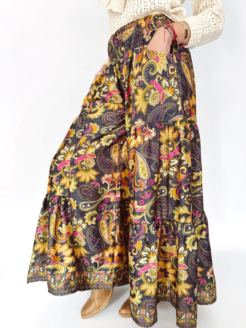 Al finalizar en su botamanga tiene una guarda que le da el toque final, bohemio y hermoso a este pantalón. Vas a amar esta pieza que traemos desde India con mucho amor.